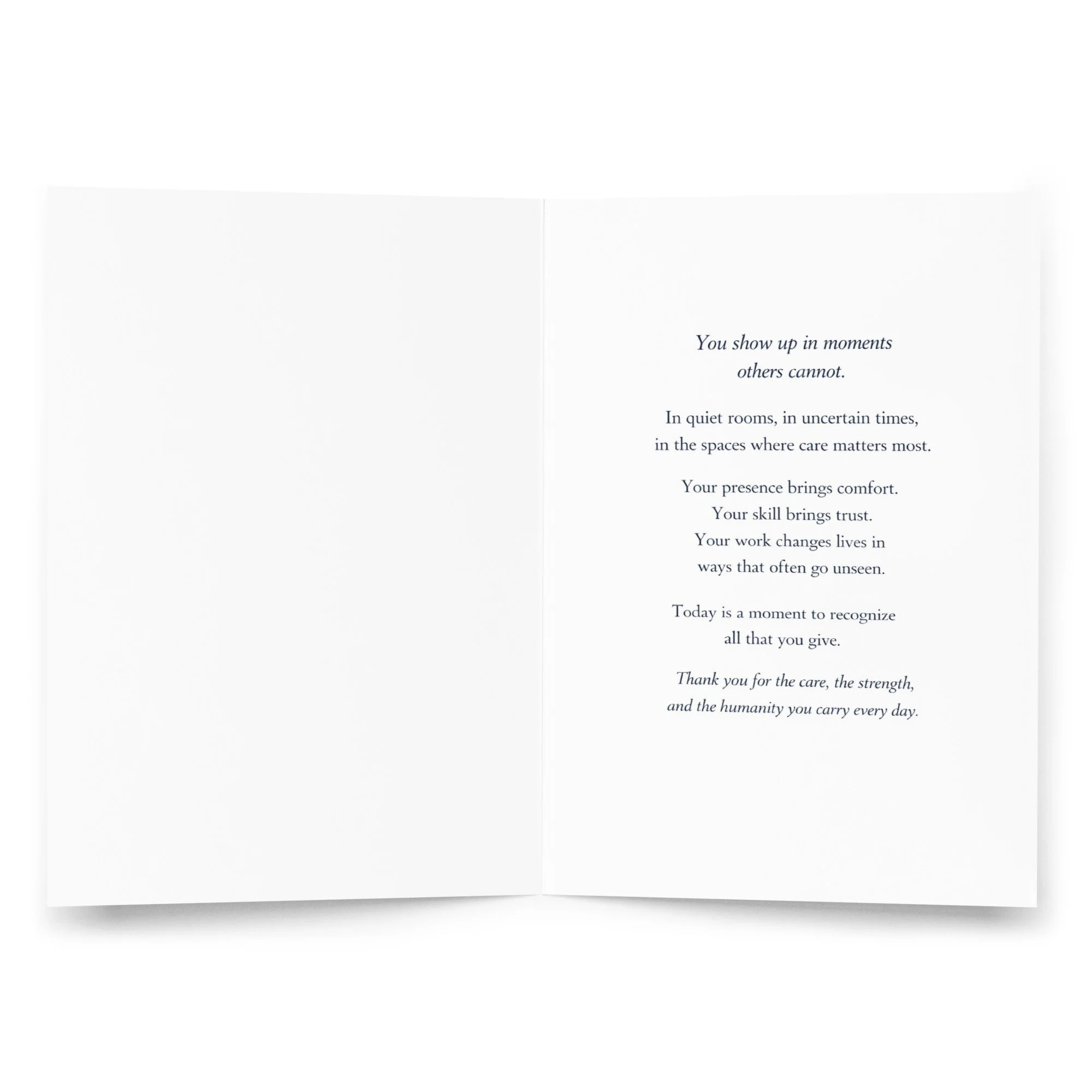 Designed with a minimalist, professional aesthetic, it carries a message that feels both grounded and sincere, something a colleague, leader, or patient would be proud to give.